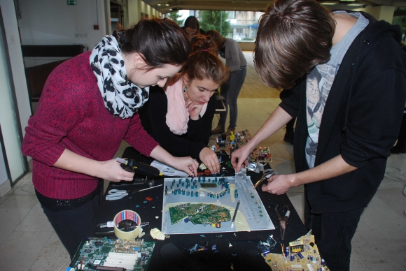 koncept / Velenje, sodobno slovensko mesto in spomenik modernizma, je nastalo zaradi industrije, industrija pa v delavnicah mesto ponovno izgrajuje. V delavnicah udeleženci, dijaki Umetniške gimnazije iz Velenja, iz sestavnih delov odsluženih industrijskih izdelkov (vezja, procesorji, matične plošče, žice) sestavijo maketo modernega mesta po principih urbanističnega načrtovanja. Delavnice so zasnovane tako, da promovirajo mesto Velenje, izobražujejo o njegovem nastanku in poudarjajo pomen industrije v njegovem razvoju.
