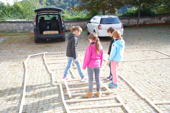 koncept delavnice / Javni zavod Kozjanski park je v letu 2012 končal projekt Sodobna arhitekturna tipologija na Kozjanskem, v okviru katerega smo želeli tudi mlade spodbuditi k razmisleku, kako hiša vpliva na občutljiv prostor Kozjanskega parka. S Kozjanskim parkom smo oblikovali nov koncept delavnic za otroke z naslovom Hiša v parku. Tako že naslov delavnice asociira na dvojen pomen, prvič se hiša nahaja v neurbanem okolju parka, drugič pa jo najdemo v zavarovanem območju s statusom regijskega parka. Delavnico smo prilagodili četrtošolcem. V prvem delu spoznavamo kulturno krajino Kozjanskega ter prostor Kozjanskega z vsemi čutili (z arhitekturnim detektivom). V drugem delu narišemo načrt kozjanske hiše in nato tlorise v pomanjšanem merilu z letvicami prikažemo v dejanskem prostoru. Sprehodimo se po novih hišah, ki jih načrtujejo in izvedejo otroci in v njih odkrivamo elemente tipične kozjanske hiše.