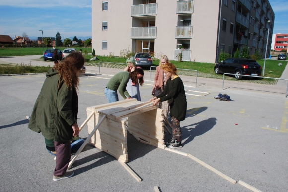 Stanovanjska soseska je zapleten organizem, ki se neprestano spreminja. Kako na njegovo podobo vplivajo, avtomobili, pešci, nove stavbe...? Kaj nas v našem domačem okolju moti in kaj nam je všeč? Spoznavali bomo, kako so soseske nastajale skozi čas in zakaj so danes takšne kot so. S pomočjo staršev ter starih staršev bodo otroci poskušali ugotoviti, kakšno je bilo v njihovi soseski življenje nekoč. Nato bomo skupaj na delavnicah pogledali današnje stanje ter na podlagi izkušenj in na podlagi želja poskušali izoblikovati prihodnjo podobo sosesk. Prvenstveno se bomo ukvarjali z javnimi površinami ter površinami za igro. Kot pravi urbanisti bomo skušali ugotoviti, kako so posamezni deli soseske med seboj povezani in najti rešitve kako bi izboljšali njihovo podobo. Delavnice so namenjene povabljenim osnovnim in srednjim šolam.