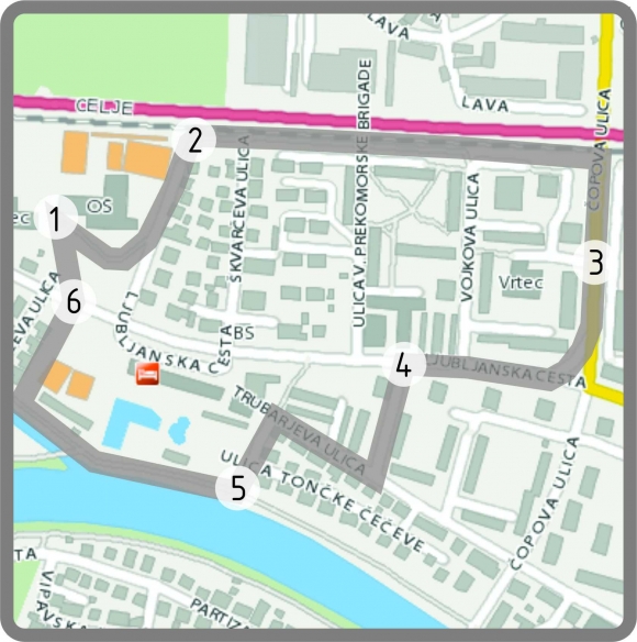 pot sprehoda / vodila nas je od II. OŠ po mestni četrti Slavko Šlander, primerna je bila za pešce vseh starosti, namenjena je bila vsem, ki se radi sprehajajo po tem delu Celja, še posebej pa šolarjem in njihovim staršem