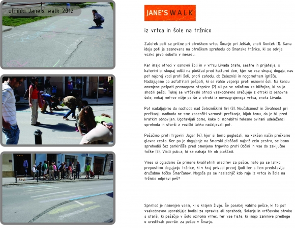 Vmes si ogledamo še primere kvalitetnih ureditev za pešce, nato pa se lahko prepustimo dogajanju tržnice, ki v kraj privabi precej ljudi ter s tem predstavlja družabno točko Šmarčanov. Mogoče pa se naslednjič kdo raje iz vrtca in šole na tržnico odpravi peš?