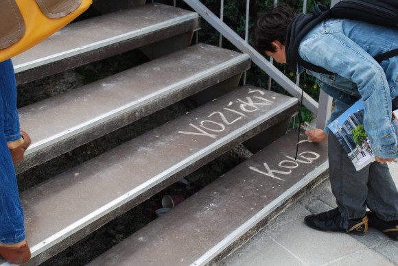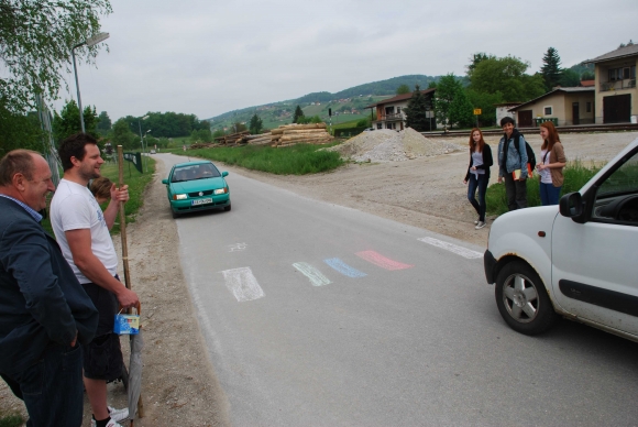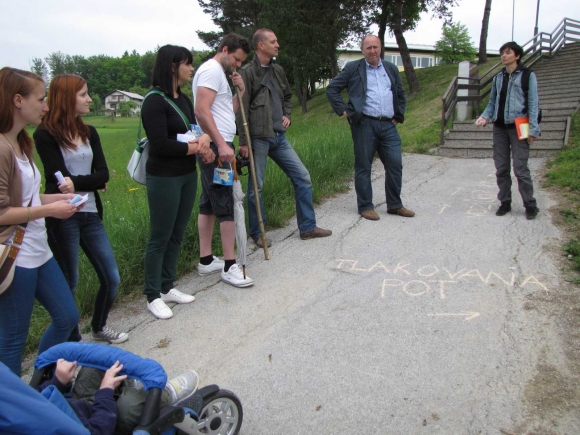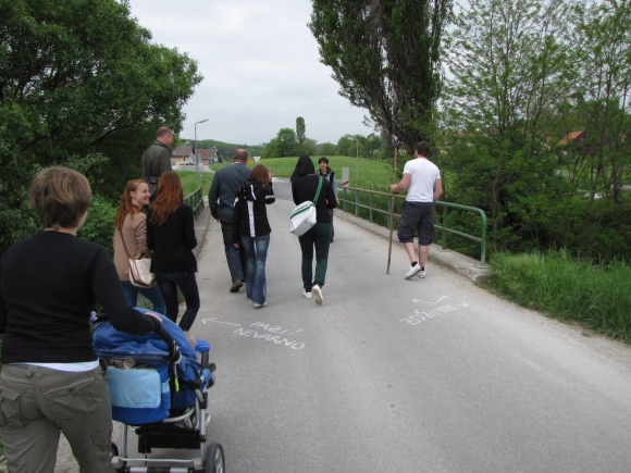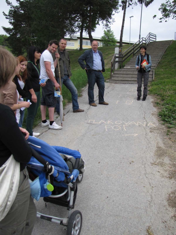 Pot je bila zasnovana na konceptu sprehajanja z vozičkom in pešačenja otrok. Sprehodili smo se po petih točkah, kjer smo naleteli bodisi na določeno težavo ali primer dobre prakse, kot so nižanje pločnikov in obnova nadhoda za nemoteno prečkanje poti.