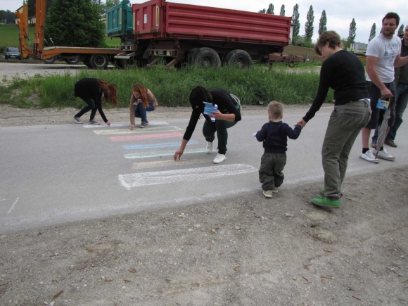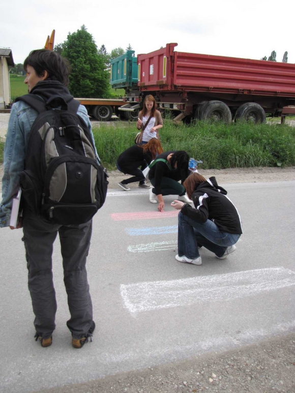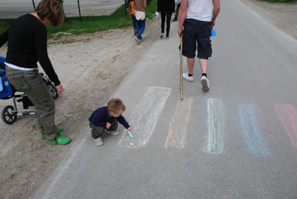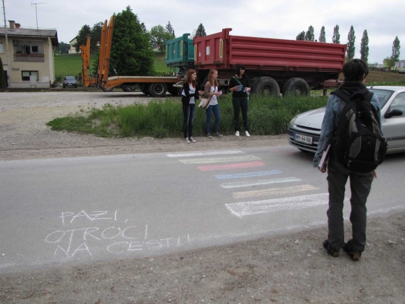 pot sprehoda / vodila nas je od vrtca do šole, čez nadhod skozi trg do kavarne, primerna je bila za pešce vseh starosti, namenjena je bila vsem, ki s krajem živijo