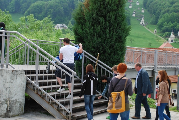 Pot nadaljujemo do nadhoda nad železniškimi tiri (3). Neučakanost in živahnost pri prečkanju nadhoda ne sme zasenčiti varnosti prečkanja, kljub temu, da je bil pred kratkim obnovljen. Ugotavljali bomo, kako bi morebitni telesno ovirani udeleženci sprehoda in starši z vozički lahko nadaljevali pot.