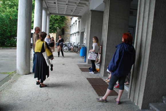 kje / zbor na Krekovem trgu v Celju (pred vhodom v Celjski dom)
